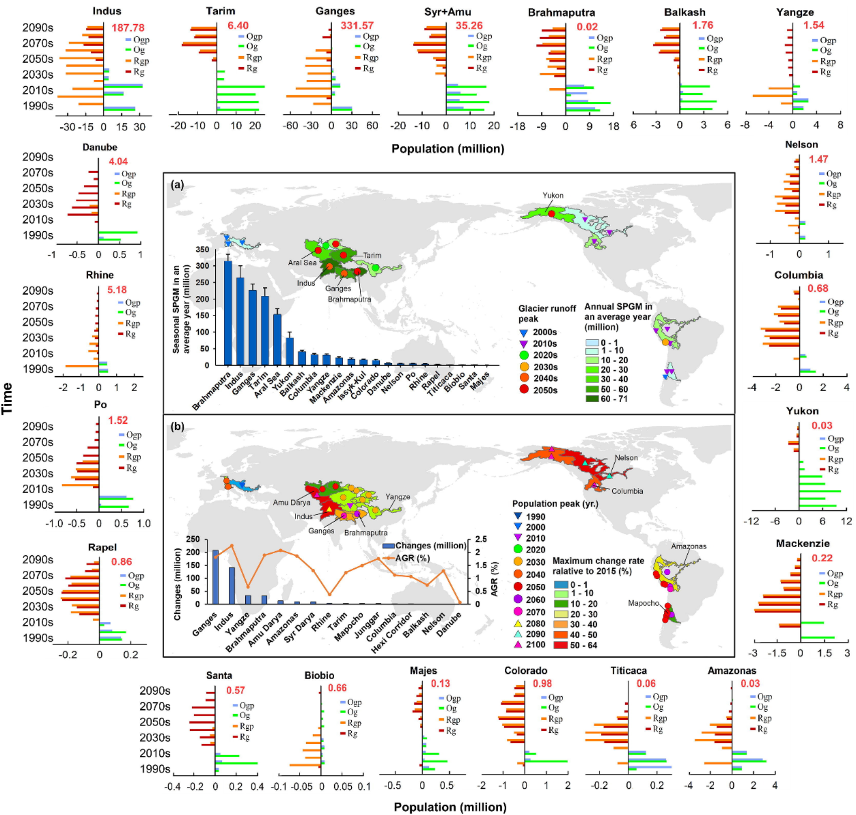 山地冰川是全球广大寒区旱区重要的淡水来源,然而气候变化引起全球冰川快速退缩,对流域水资源和社会-生态系统产生深远影响。开展冰川水文变化及其对流域社会-生态系统演变的影响研究对可持续发展至关重要,但目前关于全球冰川水文与受影响人口变化的综合效应仍未评估。近日,老司机论坛 地表过程与资源生态国家重点实验室效存德教授团队联合瑞典哥德堡大学、中国科学院西北生态环境资源研究院和青藏高原研究所等单位科研人员在Science Bulletin(2021年影响因子11.78)发文,对全球冰川融水和人口变化的不匹配性及其引起的发展机遇和风险进行了系统研究。