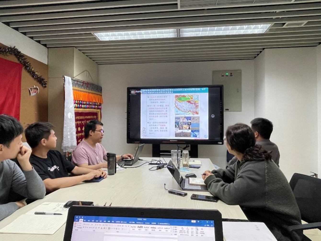 潘鑫豪同学的汇报的题目为“Understanding Urban Expansion on the Tibetan Plateau over the Past Half Century Based on Remote Sensing: The Case of Xining City, China ”,他的论文以青海省西宁市为研究区域,揭示西宁1969-2017年城市景观过程的时空格局,为西宁市可持续发展提供建议。研究使用锁眼卫星数据等信息源,运用随机森林模型提取城市,结合中国长时间序列城市土地数据集进行时间序列订正,并在不同时间尺度和空间尺度进行分析。得到结果:(1)结合高分辨率历史间谍卫星数据和长时间序列城市扩展数据能够准确地揭示西宁市近50年城市景观过程,并为分析中国其它地区长时间序列城市景观过程的时空格局提供了有效途径。(2)在社会经济发展以及交通和地形等区位因素的综合影响下,西宁市1969-2017年经历了大规模的城市景观过程。这一时期的城市景观过程呈现出显著特征。(3) 西宁市城市建成区的快速扩展会加剧粮食供需矛盾、自然灾害风险和生态环境风险,对区域可持续发展构成威胁。因此,西宁市亟需推进紧凑城市、韧性城市和绿色城市建设,优化交通网络,调整城市布局,鼓励城市农业,促进城市和区域的可持续发展,为青藏高原全域的城市发展提供参考。汇报完毕潘鑫豪同学和在场参会同学展开了热烈的讨论,董满宇老师对潘鑫豪同学的研究进行指导并提出建议。