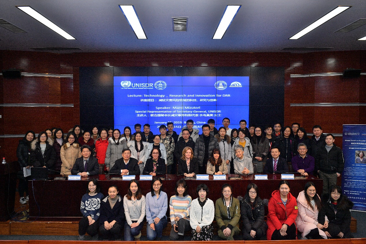 1月15日,联合国减灾办公室(United Nations Office for Disaster Risk Reduction, UNISDR)主任、联合国秘书长特别代表 (Special Representative of the Secretary-General, SRSG)水鸟真美(Mami Mizutori)女士、UNISDR亚太办主任Loretta Hieber-Girardet女士以及UNISDR项目官员Ana Thorlund女士一行来访我校。