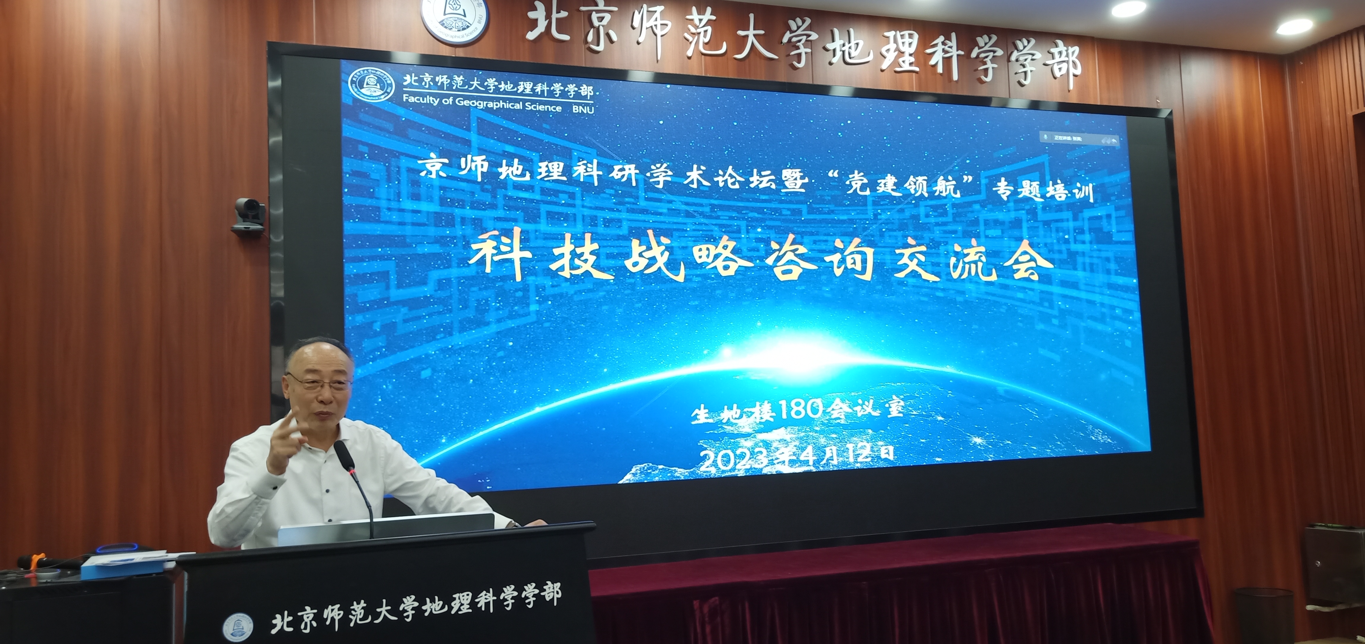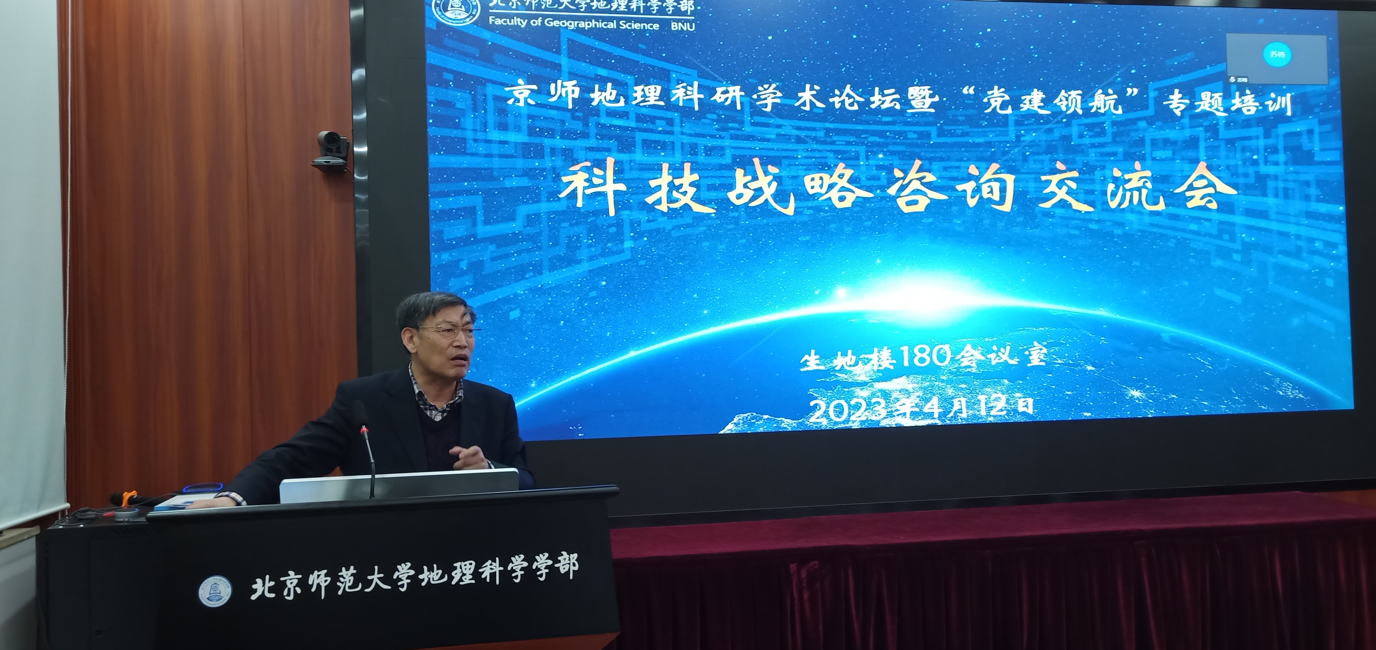 2023年4月12日下午,京师地理科研学术论坛暨“党建领航”专题培训之科技战略咨询交流会在老司机论坛 生地楼180会议室成功举办。会议邀请宋长青教授、董孝斌教授、张春来教授分享科技咨询报告与撰写经验,特别邀请史培军教授、校智库办李文主任与会交流指导。董孝斌教授和蒋卫国教授联合主持会议,学部党委书记苏筠、副书记张红、学部全体师生党支部书记等近百名师生参会交流。