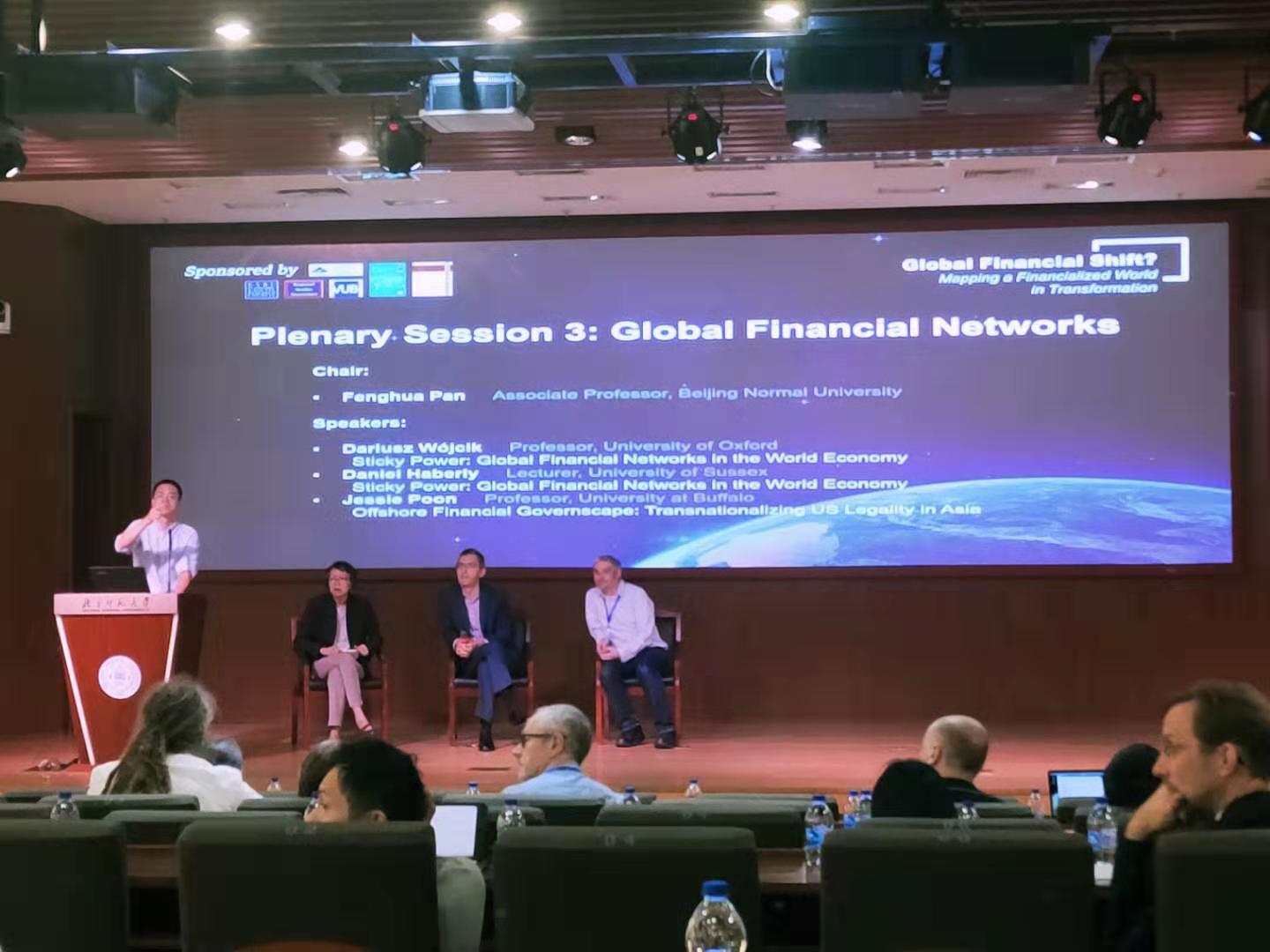 第三场主题报告由老司机论坛 副教授潘峰华主持,主题是全球金融网络。牛津大学地理与环境学院经济地理学教授Dariusz Wójcik、萨塞克斯大学全球政治经济中心讲师Daniel Haberly、布法罗大学地理系教授Jessie Poon分别作了主题报告。