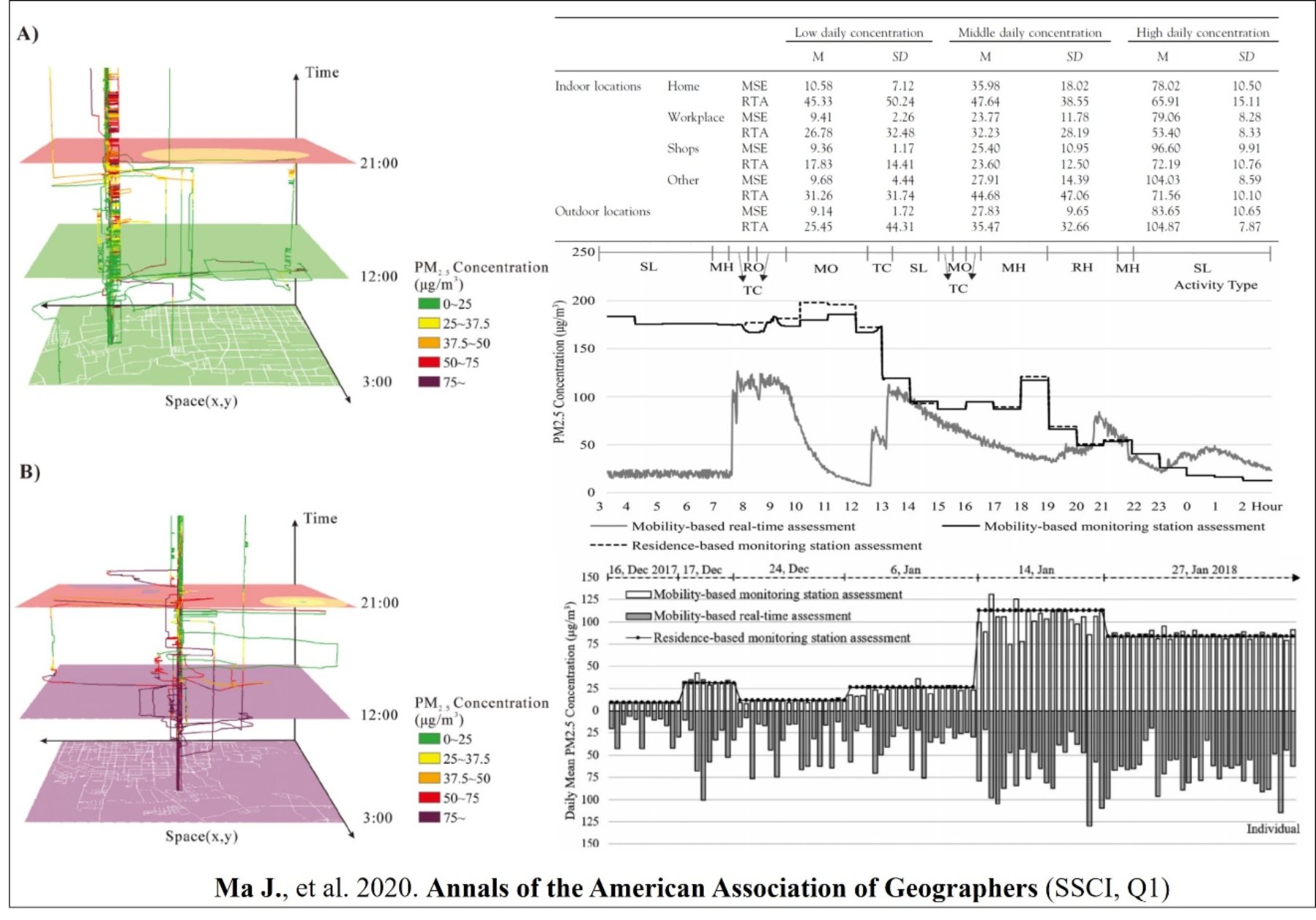 近日,地理学院马静老师及合作者在地理学国际旗舰期刊Annals of the American Association of Geographers以及环境健康领域国际TOP期刊Environment International(5年IF=8.76)正式发表系列研究成果,创新了基于居民日常时空行为轨迹的动态环境污染暴露研究方法与视角,在一定程度上提高了微观个体居民实时环境污染暴露的测度精度。两篇文章马静老师均为第一作者,老司机论坛 为第一署名单位。