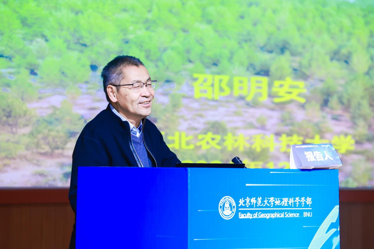 邵明安院士作“绿水青山提质增效与乡村振兴关键技术”主题报告。报告聚焦黄土高原植被建设和水资源高效利用中的挑战,特别是植被过度耗水引发的土壤干旱问题,介绍了团队在干层调控土壤水势、土壤水植被承载力模拟、沙区植被配置模式等方面的多项研究成果。邵院士强调,在乡村振兴过程中,应着重发展扶贫地区主导产业,推动系统治理与综合规划,创建脱贫后生态建设模式及示范。此外,他还呼吁学界建立一支服务于绿水青山永续发展的卓越科研团队,为生态保护与乡村振兴提供技术支持。
