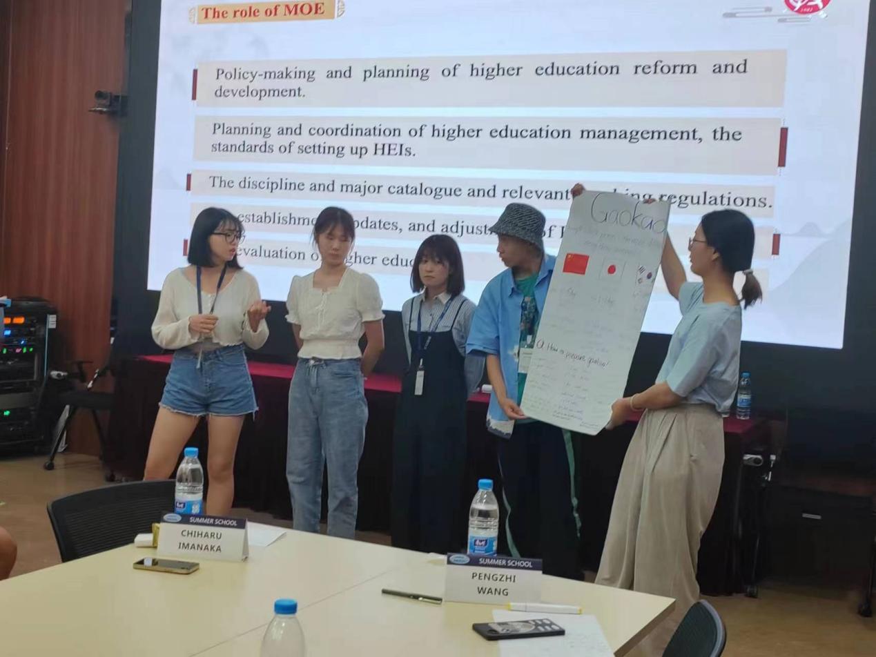 8月26日下午,教育学部桑国元老师讲授了“中国的教育制度”课程,他使用了PBL教学法,以学生为中心,让大家提出问题并讨论解决,最后进行汇报展示,每个小组的中日韩三国学员都分别介绍了自己国家的教育制度。四个小组从不同角度进行介绍,大家对不同国家的教育有了更进一步的认识。