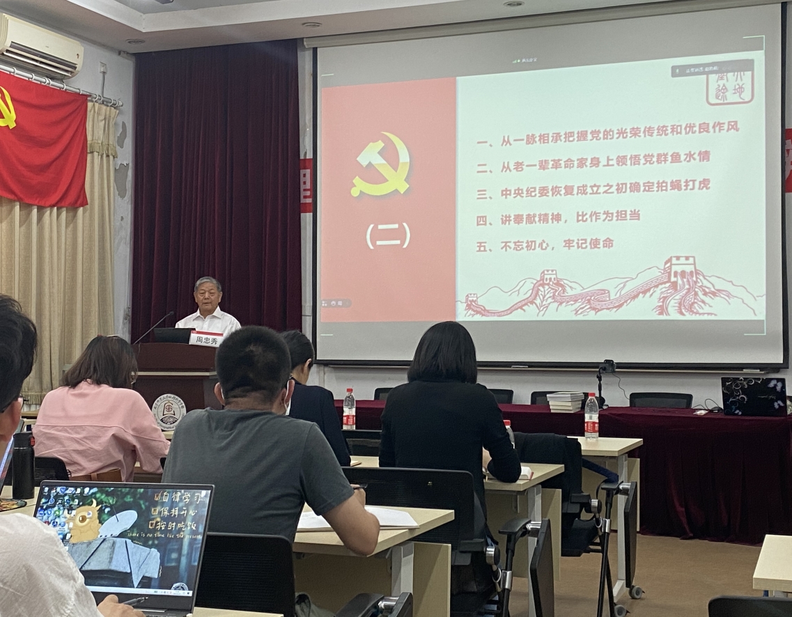 随后,周书记通过讲述1979年中央纪委恢复成立后他所见证的“拍蝇打虎”故事,解释了反腐倡廉建设和党风廉政建设的区别与联系,进而谈到了中央纪委查办案件的现状。同学们感受到党中央维护党规党法、搞好党风的决心与执行力,感触良多。