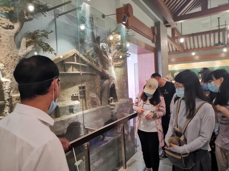 进入纪念馆后,大家在讲解员带领下,认真学习焦庄户地道战的始末。第一展区“冀东抗战燃烽火”介绍了焦庄户地道战的发生背景。焦庄户一带是抗击日本侵略者较早的地区之一:1937年,中国共产党在冀东创建了抗日根据地;1940年后,焦庄户成为冀东最早开展地道战的地区,共修建了本村及连接邻村的地道网23华里。在艰苦的环境下,焦庄户人民巧用地道和敌人开展英勇顽强的斗争,为抗日战争胜利做出了卓越贡献。第二展区“人民战争建奇功”展出的各式各样的模型、工具,宛如先辈们奋战的缩影,生动再现了焦庄户人民当时的智慧和勇气,无不让参与活动的同志们赞叹不已。最初,地洞只用于躲避日军搜查;随后,焦庄户村村长马福在党的领导下组织全村人民挖地道,开展地道战,将地道隐蔽、灵活、机动的特点发挥得淋漓尽致。