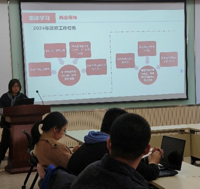 会议伊始,党建小组组长巫敏引领大家集体学习了两会精神,通过“图”读两会与视频观看,回顾了2023年的工作成果,并对2024年的政府工作任务进行了深入学习,后重点解读了新质生产力这一关键词,带领大家一同学习了其基本概念、逻辑关系与发展措施等内容。通过学习,与会人员深刻理解了两会精神的核心要义,增强了贯彻落实两会精神的责任感和使命感。