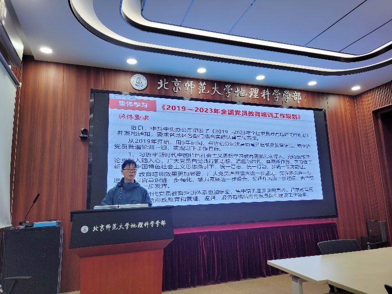会议开始,龚炳华带领参会成员就《2019-2023年全国党员教育培训工作规划》进行了集体学习。龚炳华详细介绍了党员教育培训工作开展的总体要求、习近平新时代中国特色社会主义思想教育培训、党员教育培训的主要内容、党员教育培训的方式方法与组织领导和基础保障五部分内容。加强党员的教育培训对党员进一步坚定理想信念、进一步增强党性观念、进一步提升能力素质具有重要意义,学生党支部作为高校党的基层组织的重要组成部分,是党密切联系学生的桥梁和纽带,一定要提高认识、联系实际明确工作目标,确保《2019-2023年全国党员教育培训工作规划》文件精神落实到位。