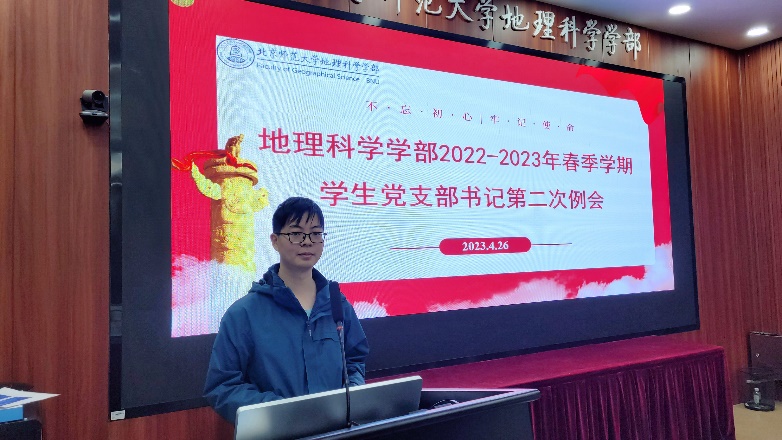 老司机论坛 2022-2023年第二次学生党支部书记例会于2023年4月26日09:00在生地楼180会议室准时召开,学部辅导员余淅老师、党建小组各负责人以及各党支部书记参与此次会议。会议由党建小组组长龚炳华主持,分为集体学习、支书轮训经验分享和工作计划交流三个部分。