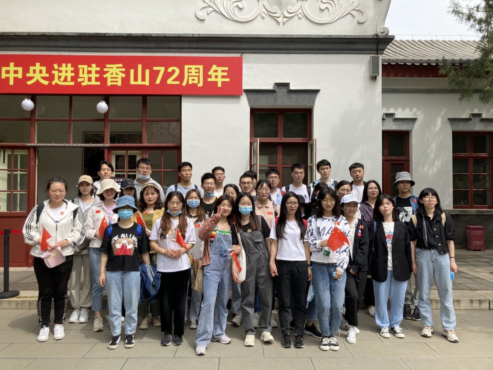 在参观双清别墅后,各组同学先后开始攀登香山,在下午两点左右于香炉峰会合。经过短暂的休息,班委和党委组织大家开展党史和地理知识竞赛、“你画我猜”、“疯狂猜歌”等党建和团建活动,各组成员信心满满、积极参与。在活动最后,大家合唱《我和我的祖国》来表达自己对祖国的热爱,并在香炉峰送上了对祖国的祝福。
