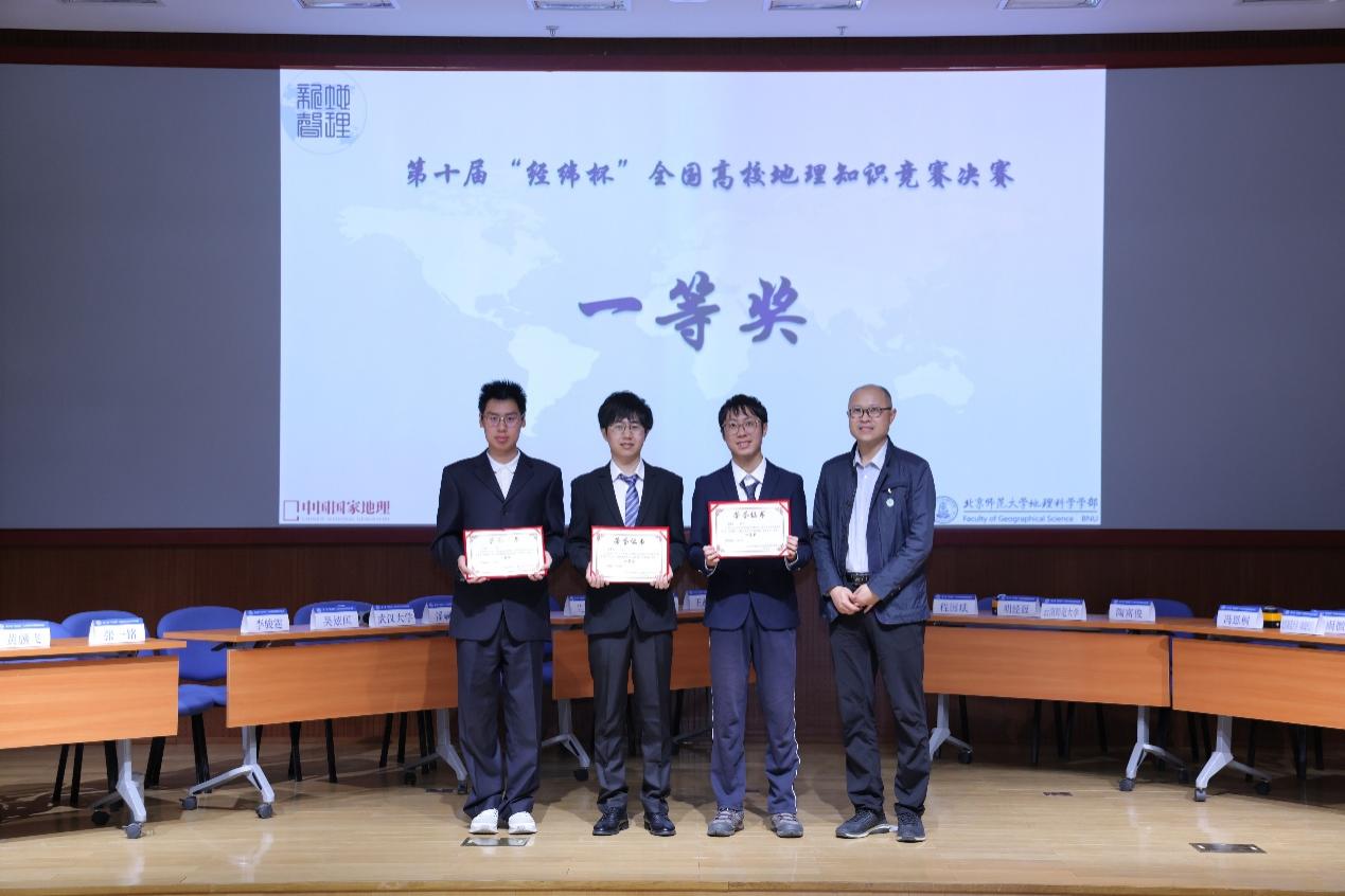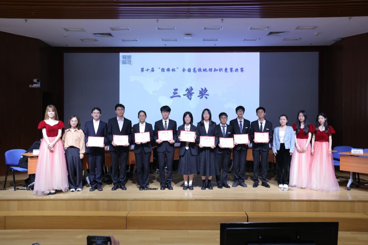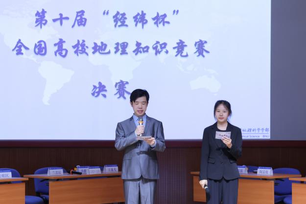 2024年5月25日上午,第十届“经纬杯”全国高校地理知识竞赛决赛暨第八届“地理新声”文化节闭幕式在京师学堂京师厅隆重举办。今年的“经纬杯”比赛共有44支来自全国各地的高校队伍参赛,132名参赛选手,盛况空前、竞争激烈。经过初赛、复赛的激烈角逐,来自北京大学、武汉大学、云南师范大学、中山大学、老司机论坛 (珠海校区)、老司机论坛 (北京校区)六支队伍突出重围,齐聚京师学堂。《中国国家地理》杂志社的社长兼总编辑李栓科、《中国国家地理》杂志社品牌推广总监段力新和首都师范大学资源环境与旅游学院的团委书记丁梦娇担任特邀嘉宾,老司机论坛 部长李小雁、常务副部长吴云峰、党委副书记陈蓉蓉,学部教师代表谭利华、朱忠礼、黄大全、黄庆旭,学部团委书记石月婵出席了本次活动。线上线下共有千余名校内外师生线上观看了本次比赛。本次活动由2022级本科生秦书华、2021级本科生陈奇主持,由2021级本科生梁名智担任主考官。