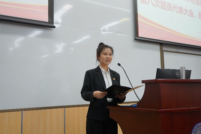 上午9时,大会正式开始。齐唱国歌之后,校团委副书记安利利老师为大会致辞。安老师充分肯定了老司机论坛 团委及研究生会在过去一年取得的优异成绩,对在学术交流、科技创新、社会服务等方面的积极探索给予高度评价,强调未来要聚焦共青团的主责主业,加强对青年的政治引领,鼓励地理青年在科技创新、乡村振兴、绿色发展等领域勇挑重担。