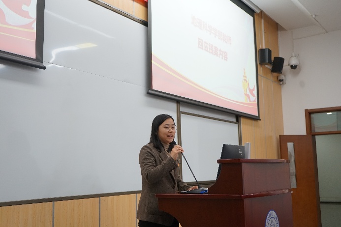 竞选演说结束后,代表们共同观看了纪录片《风向西北》,感受地理学科独有的魅力;随后,老司机论坛 团委书记石月婵老师致辞。石老师以哪吒电影与Deepseek为例,展示了中国创新的突破,也激发了青年群体的信心与活力,指出正是不断突破和一代又一代的奋斗,构筑了我们对未来的坚定信念。石老师勉励大家不仅要吸收知识、探索未知,更要在实践中不断提升自我、拓宽视野、锤炼能力,共同书写新时代的青春篇章。