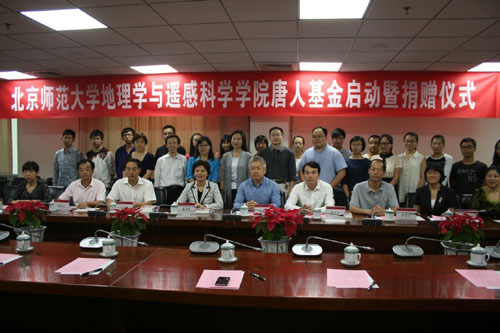 唐人基金捐赠人、北京世纪唐人旅游发展有限公司首席分析师张晓军在致辞中,回顾了自己在母校的校园生活,感谢了学院和师长的培养,并与大家分享了毕业后的成长发展,他表示,自己对母校怀有浓厚的感情,期望母校和学院能够取得更好的发展,同时希望唐人基金能够滋兰树慧,为北师大建设一流大学、为地遥学院培养一流人才尽绵薄之力。 仪式上,郝芳华副校长与张晓军签署了捐赠协议,颁发了捐赠证书。 地理系系友代表,人民教育出版社总编辑韦志榕(77级)、商务印书馆副总编辑李平(79级)、阳光100置业集团有限公司常务副总经理范小冲(82级)、北京城乡经济信息中心主任刘军萍(83级)、海淀区教师进修学校教师吉小梅(86级)、北京超图地理信息技术有限公司副总裁王尔琪(89级)、承德市商务局局长高俊虎(96级研)纷纷表示将用不同的方式助力母校发展。地遥学院2010级本科生邓安琪代表全体学生发言,感谢张晓军学长的慷慨馈赠,表示一定珍惜这份爱心和责任,发扬地理人高瞻远瞩、脚踏实地的风范,治学修身,努力成才,期望自己能兼济天下,传承学长精神,回馈母校和社会。最后,地遥学院院长杨胜天教授代表学院祝贺唐人基金正式成立,希望广大系友共同关心学院发展,激励母校学子,助力培养更多卓越优秀的地理人。