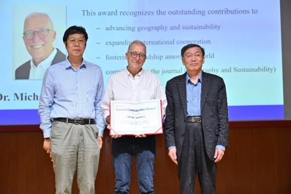 Michael Meadows院士对暑期学堂的举办表示热烈祝贺。他提到,地理学为人类社会做出了积极贡献,特别是在当今世界全球可持续发展面临诸多挑战的背景下,为土地退化、气候变化、贫困、生物多样性减少等问题的解决提供了可行方案。