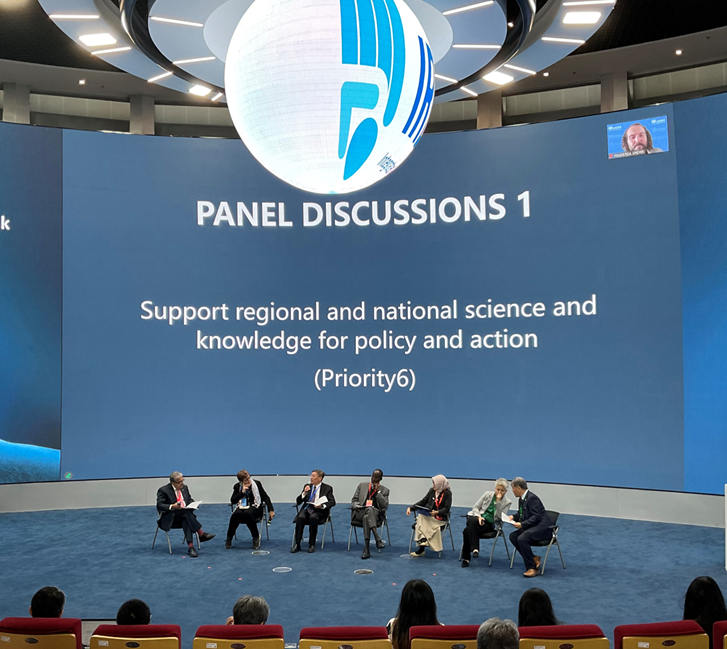 随后,史培军教授与杨赛霓教授、Ali ISMAIL-ZADE教授、Qunli Han教授、Christopher Garimoi ORACH教授、Helene JACOT DES COMBES教授、Harold Rice教授,以及Nuraini Rahma HANIFA教授等,共同参加以““通过支持科学和知识创新,促进区域和国家综合减灾政策优化和行动实施““Support regional and national science and knowledge for policy and action“为题的圆桌讨论,共同探讨如何支持区域和国家层面的科学研究和知识体系建设与创新,特别是在综合灾害风险评估与应急管理领域,灾害科技为综合减灾政策制定和行动实施提供科学依据与技术支撑,从而提升应对自然灾害的决策能力和执行效果。