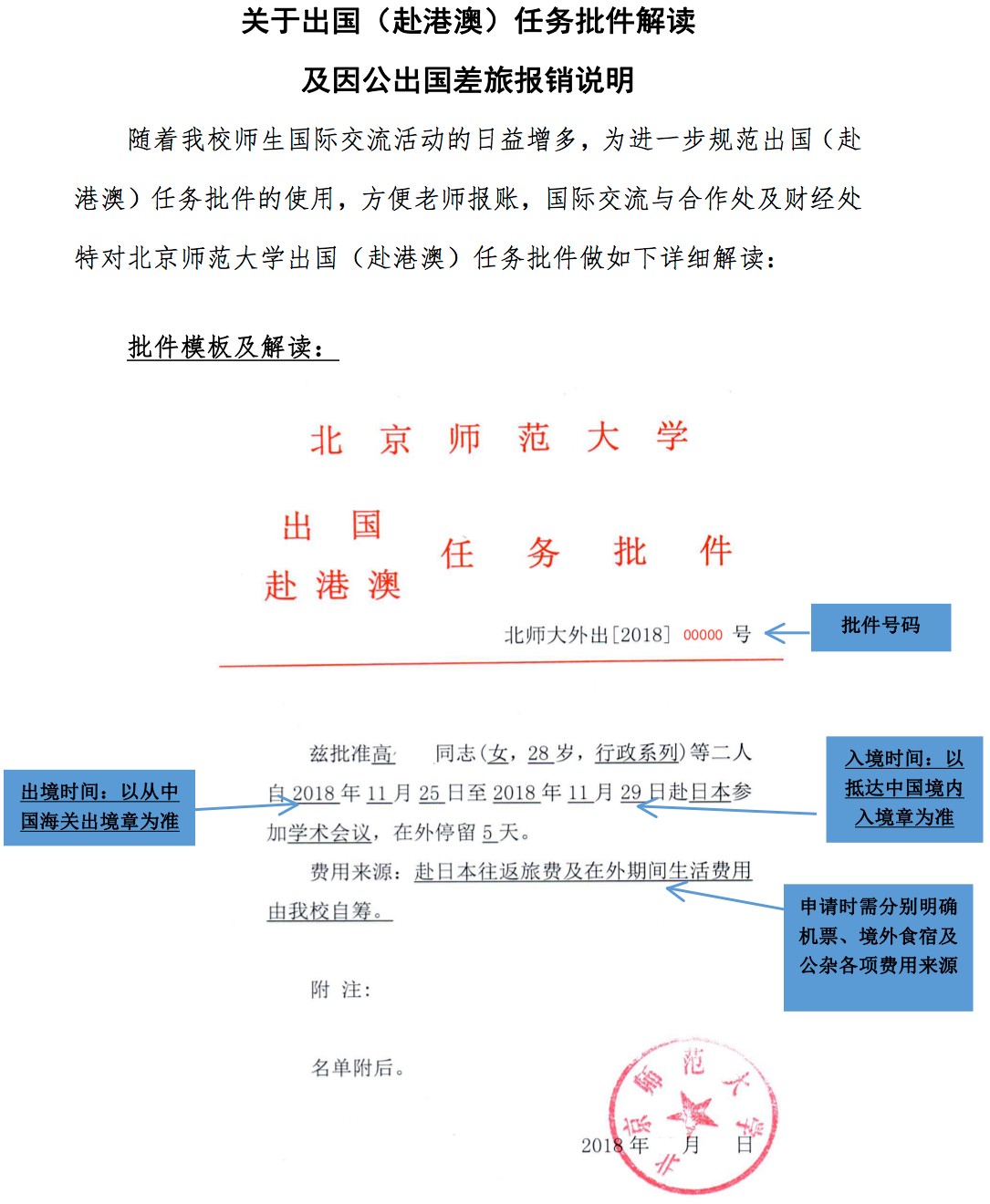 关于出国(赴港澳)任务批件解读及因公出国差旅报销说明