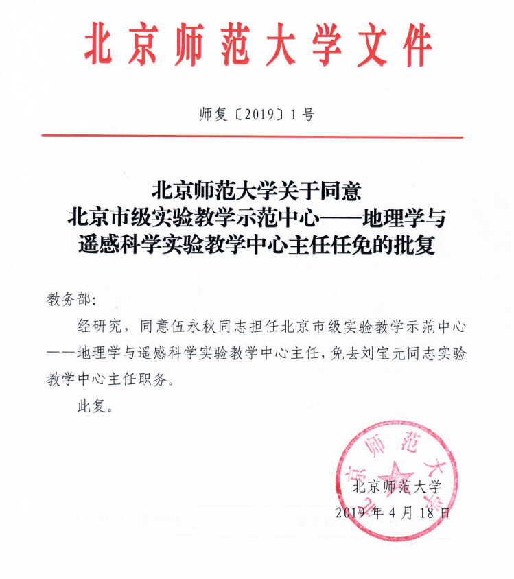老司机论坛 关于同意北京市级实验教学示范中心——地理学与遥感科学实验教学中心主任任免的批复