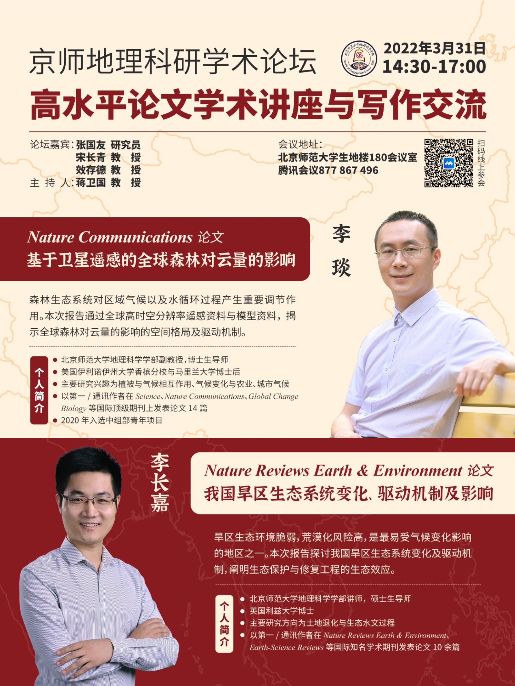 3月31日(周四)下午14:30-17:00,“京师地理科研学术论坛—高水平论文学术讲座与写作交流”将正式开讲。