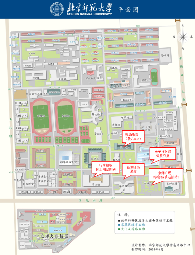 迎新点:6:00-20:00,地理学部迎新站点(京师广场东侧中间位置)