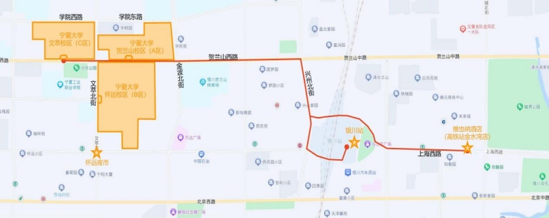 (1)银川火车站:打车或步行至维也纳酒店(银川高铁店),6-10分钟。