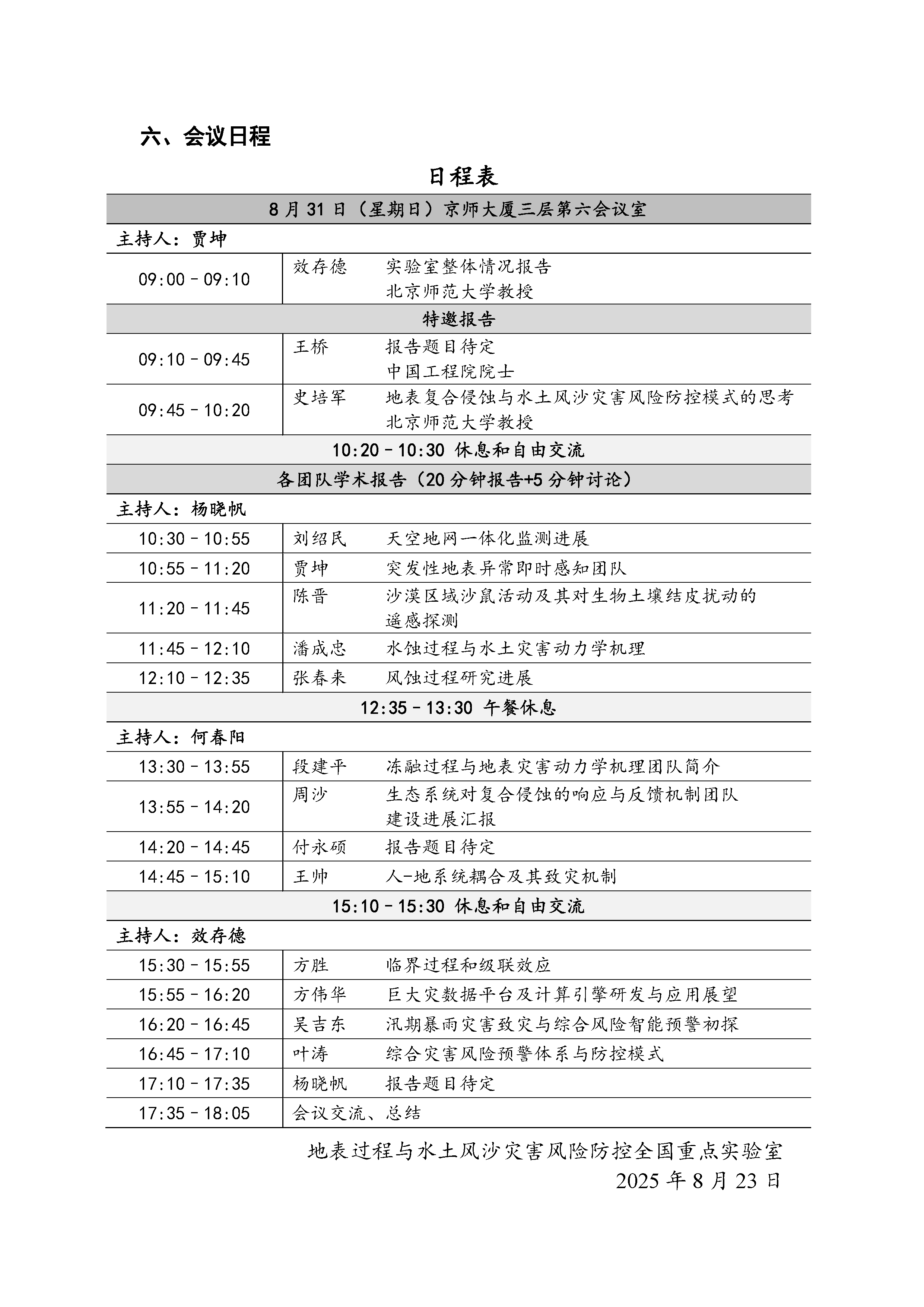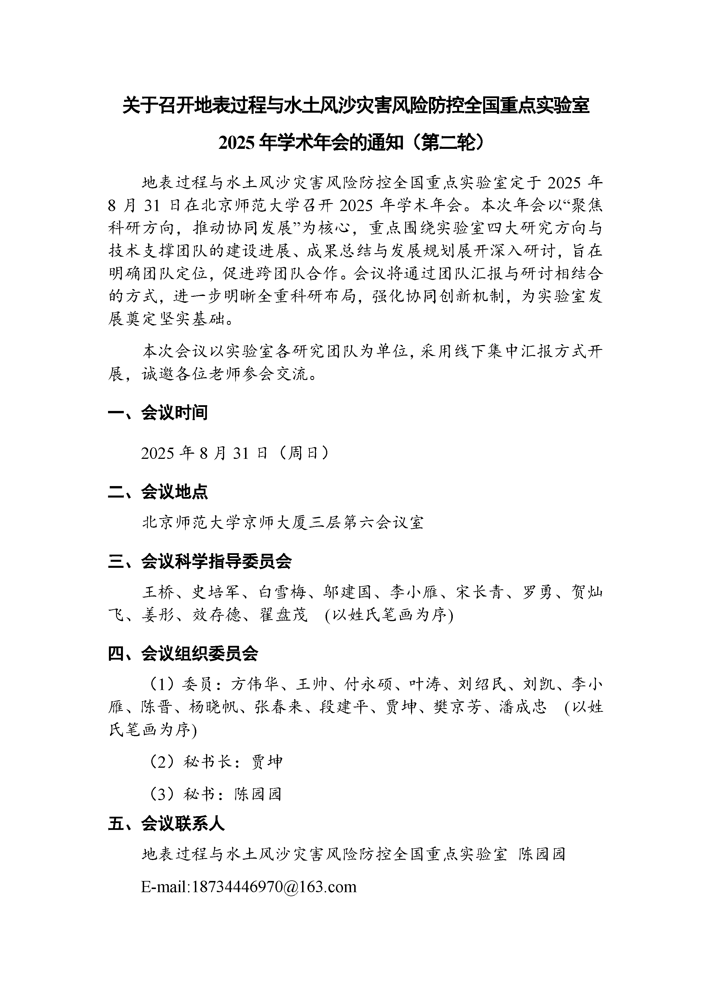【通知】关于召开地表过程与水土风沙灾害风险防控全国重点实验室2025年学术年会的通知(第二轮)