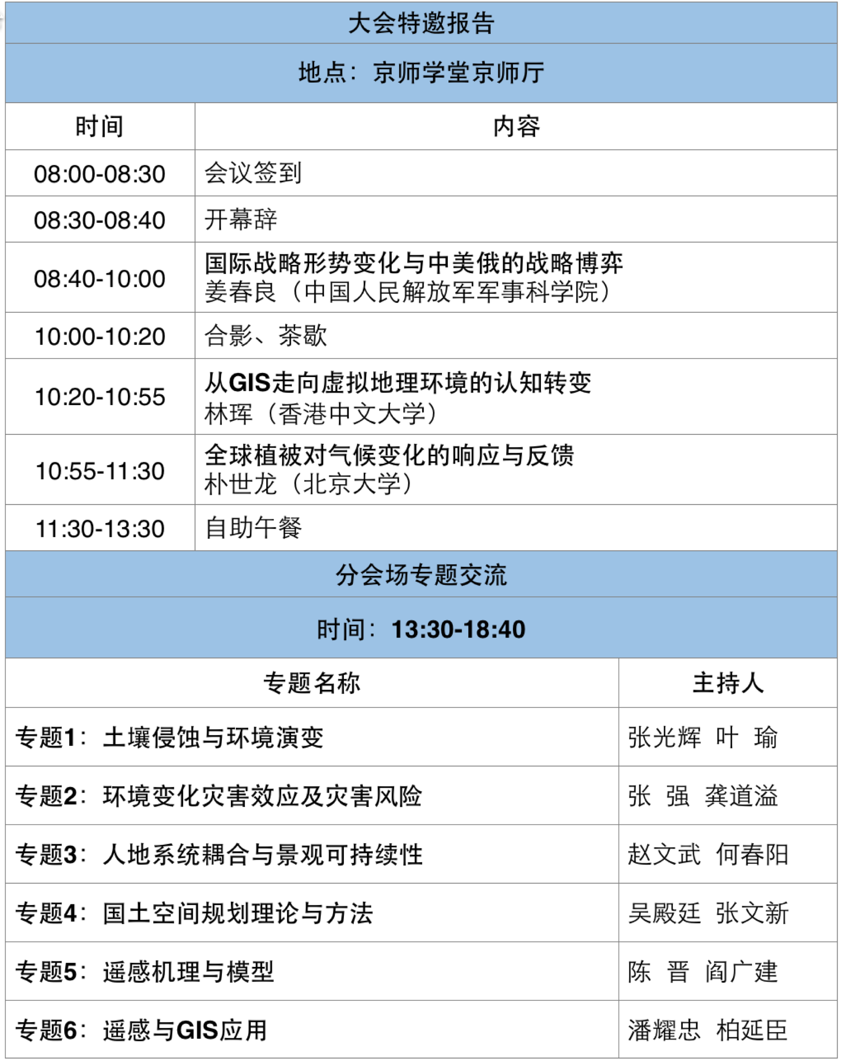 大会将秉承“把握学术热点、引领学术前沿、活跃学术氛围”的宗旨,邀请国内外地理学领域知名专家参会并作特邀报告,按照不同的主题组织专题学术报告,交流老司机论坛 最新研究成果,展望未来热点和趋势。