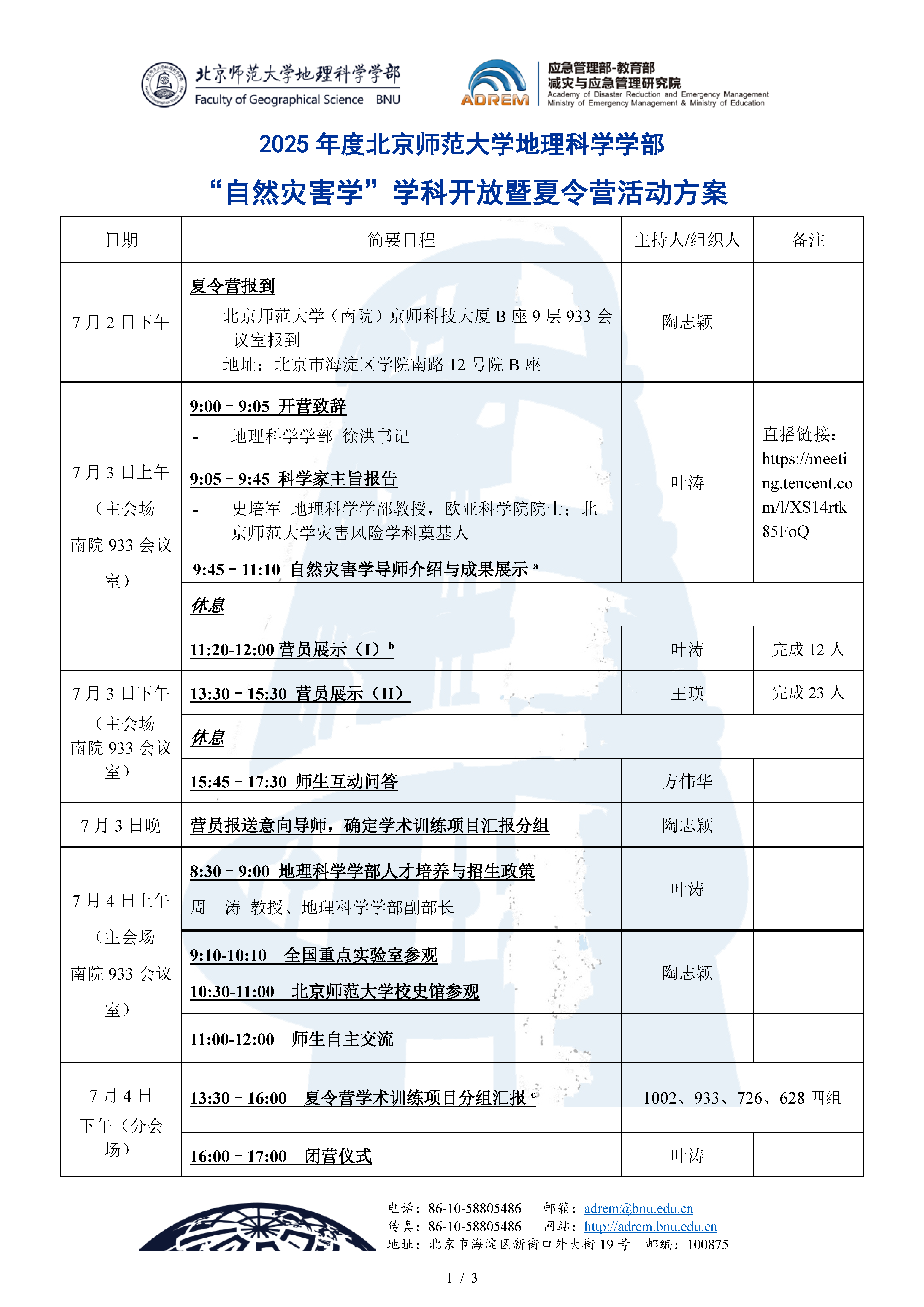 【通知】2025老司机论坛 “自然灾害学”暑期夏令营 议程