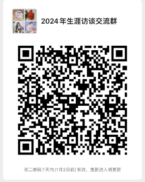 报名成功的团队负责人请同时扫码加入学校的“2024年生涯访谈交流群”和学部的“学部24年职涯共我访谈群”。