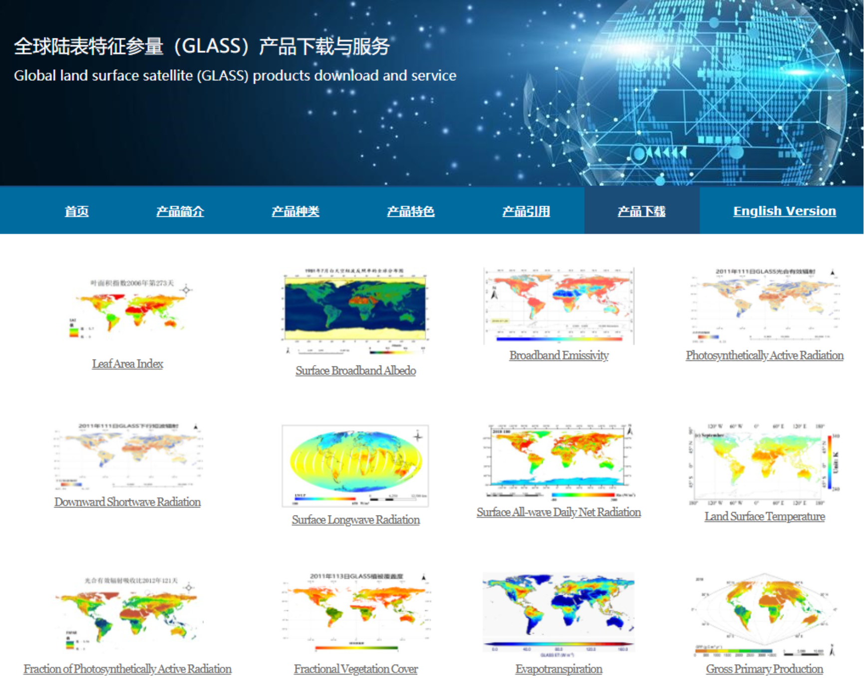 长时间序列的全球陆地特征参量产品服务