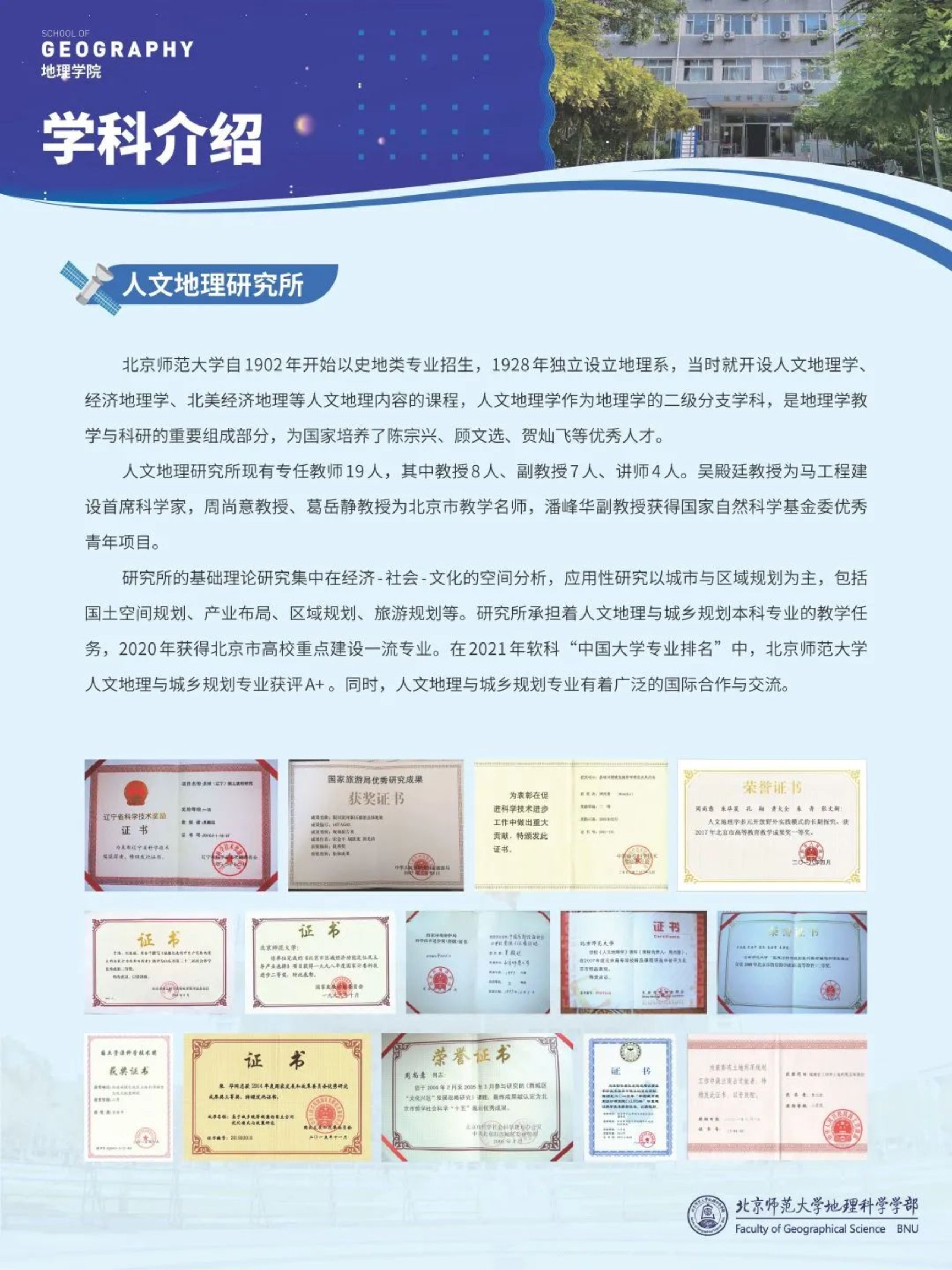 学院教师刘慧平、葛岳静获得北京市高等学校教师名师奖;苏筠主讲的“中国地理”获得了国家级一流本科课程;周尚意等获得北京市高等教育教学成果一等奖,为学部本科生教学工作树立了榜样和标杆。