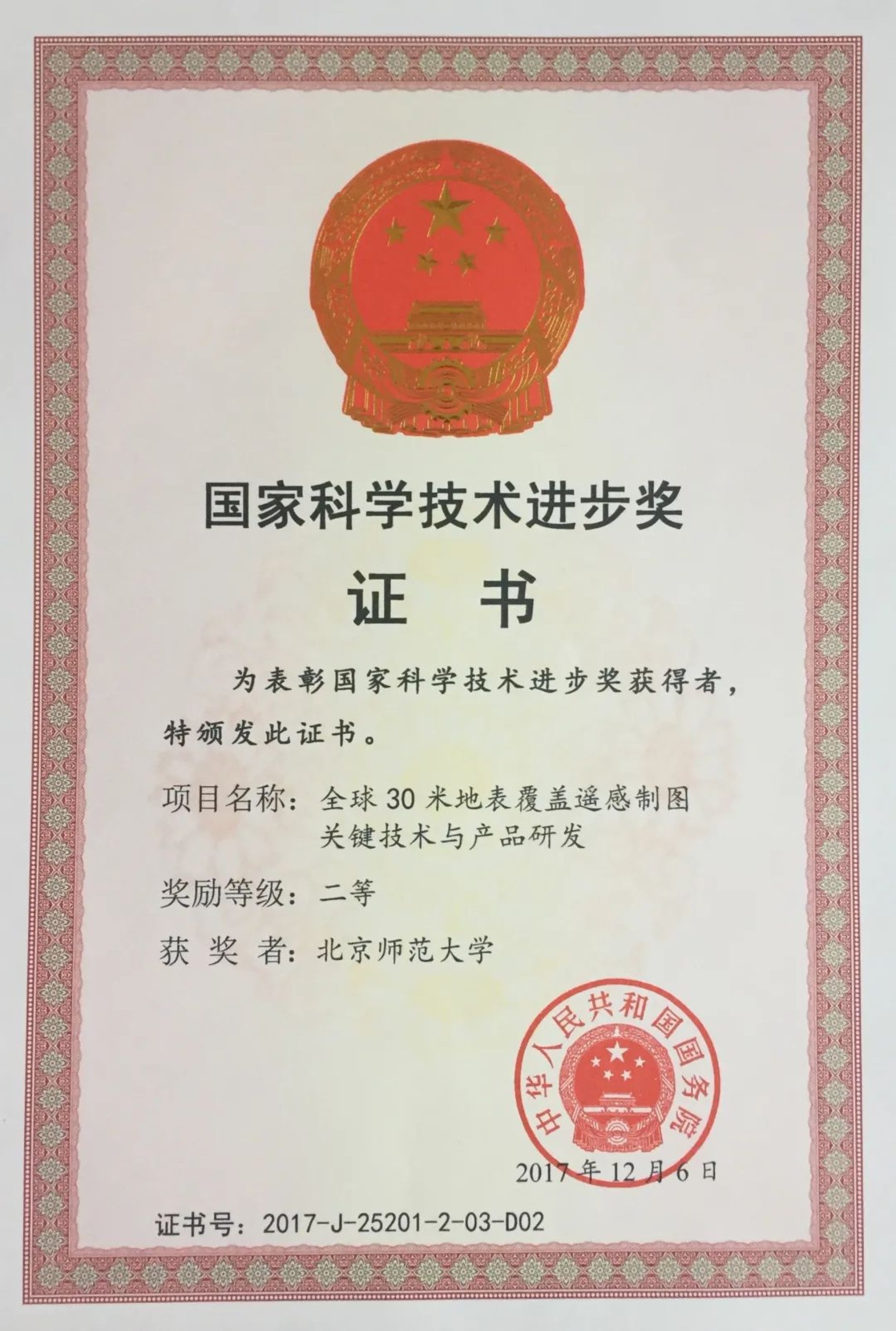 4.“全球30米地表覆盖遥感制图关键技术与产品研发” 成果获国家科学技术进步奖二等奖