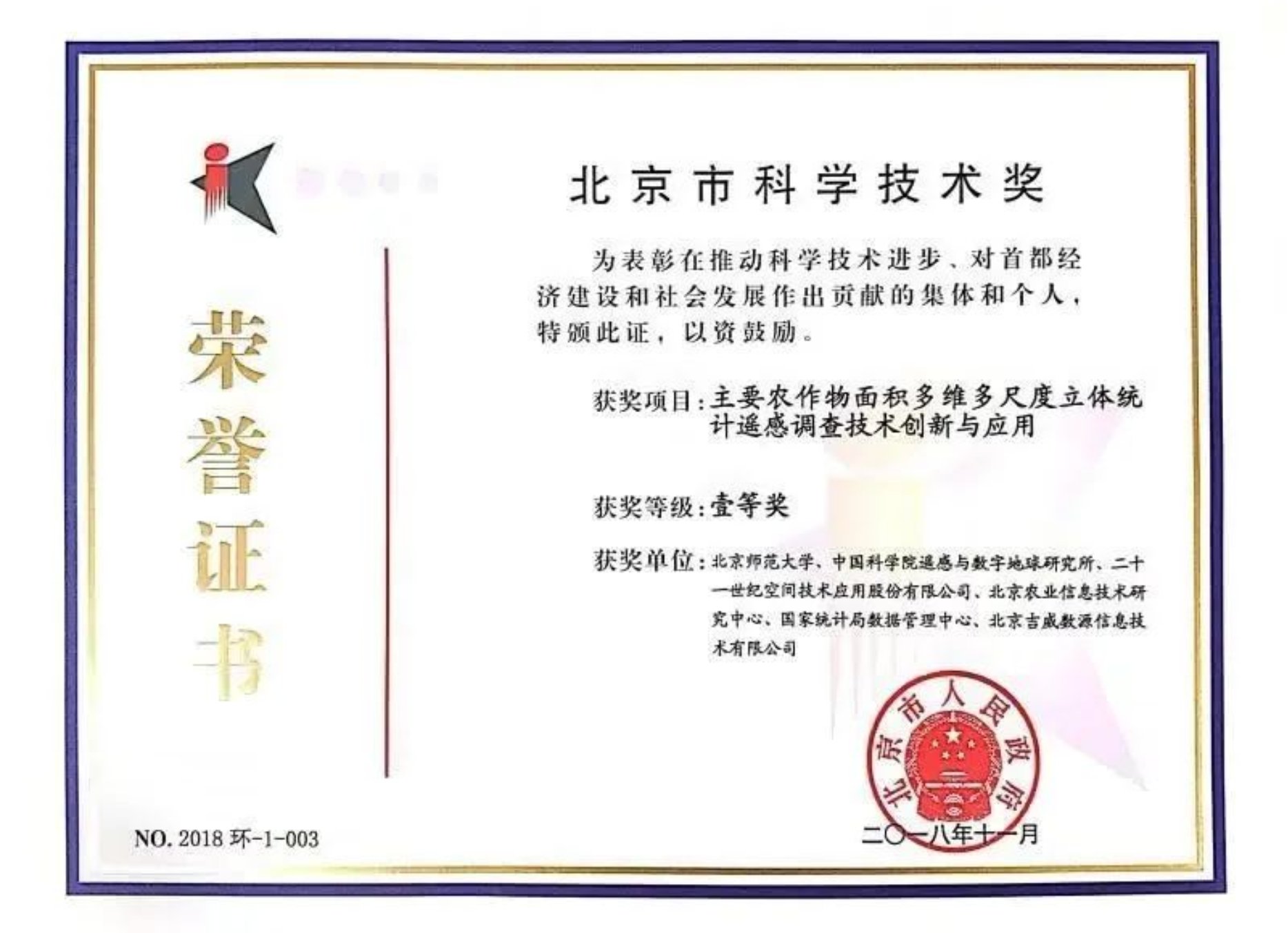 5.“主要农作物面积多维多尺度立体统计遥感调查技术创新与应用”成果获北京市科学技术奖一等奖