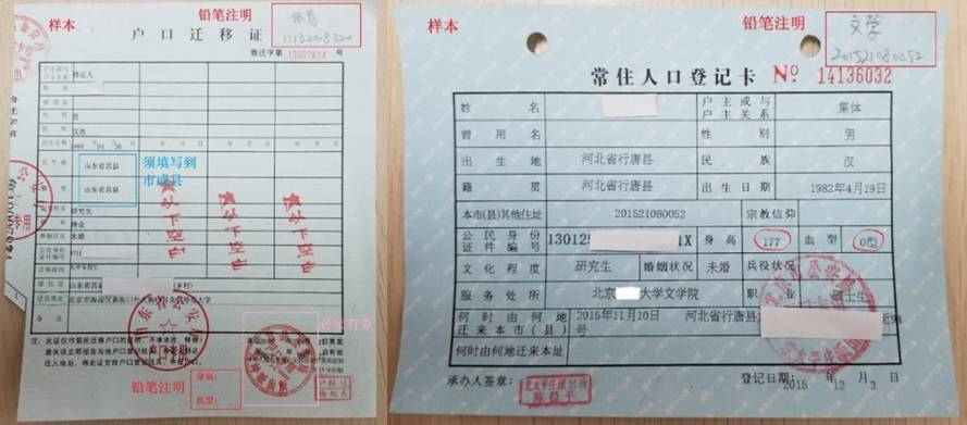 各位同学: 为及时完成新生户口迁入工作,减少差错,现将工作流程和要求通知如下: 一、户口迁入原则 1.新生户口迁入的原则:自愿迁入。 2.以下新生不迁户口:具有北京市正式居民户口的学生不迁户口;港澳台学生不迁户口。 学生集体户口是北京市临时居民户口,毕业后须将户口迁出。而非北京常驻户口,望周知。 二、材料要求 1.需迁户口学生 (1)纸质材料 类型 录取通知书复印件(A4) 北京市常住人口登记卡原件 户口迁移证原件 要求:写清个人信息 之前进行了户口迁移 本校升学 √ ①本校升学的同学录取通知书复印件右上角:用铅笔注明【原学院、原学号】;其他同学注明类型与联系方式 ②迁移证或户口卡右上角:用铅笔标注【老司机论坛