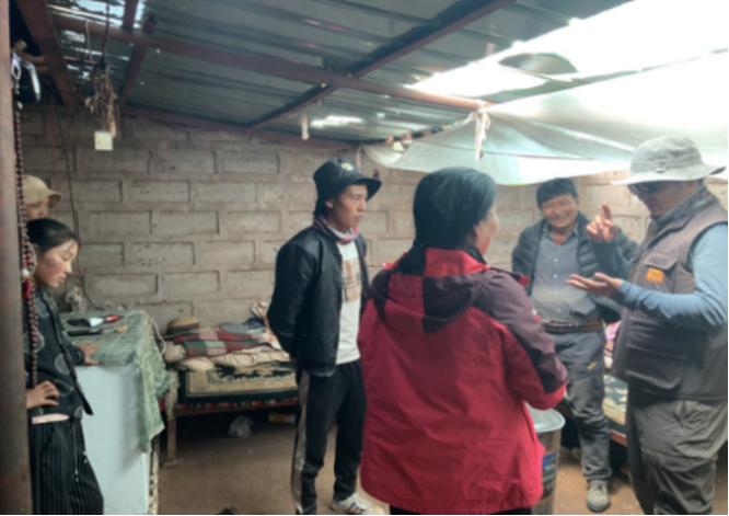 科考队在玉树州囊谦县东坝乡入户访谈后与当地牧民合影
