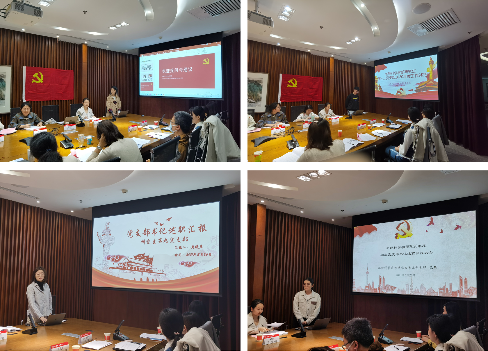在工作交流环节,评委老师们高度肯定了各学生党支部在2020年开展的各项党支部建设工作与活动。苏筠老师在总结时指出:各支部在开展党支部活动时要注重特色、专业和品牌,可以结合第二次青藏高原科考、减灾等内容多办具有地理专业特色的活动;党支部工作要以线上和线下相结合的方式开展,但可以适当减少线上活动的次数,增加线下活动的次数,以利于增进支部成员的交流;党员发展要做到流程规范、档案严谨、保证质量。针对学生党支部2021年的党务工作和党建活动,苏筠老师建议各支部可以从地理视角去解读党史、党的政策决策等,贴合“中国共产党成立100周年”这一主题开展活动。