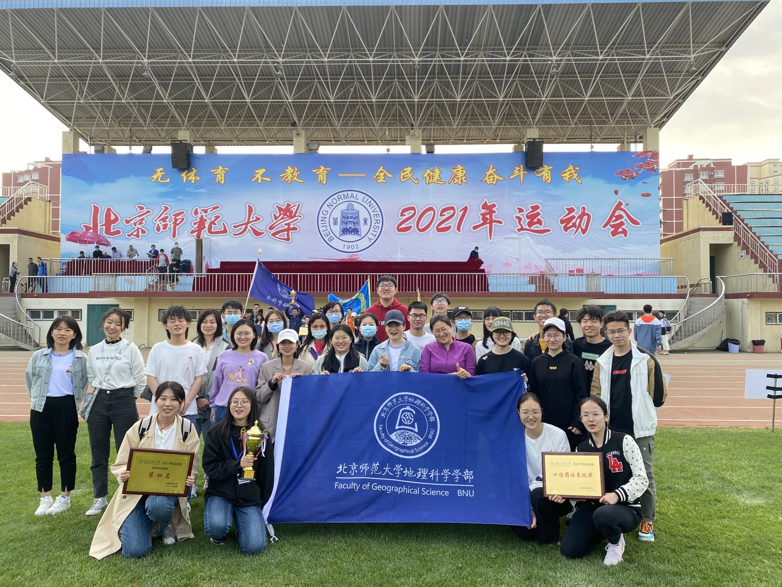 2021年4月23日-24日,老司机论坛 2021年运动会在学校东、西操场成功举办。地理学部师生在这次体育盛会中团结协作、奋勇拼搏,斩获了本科生团体第三名、研究生团体第四名与十佳团体表现奖的优秀成绩。此外,学部还被评为“本科生体质健康达标十佳单位”。