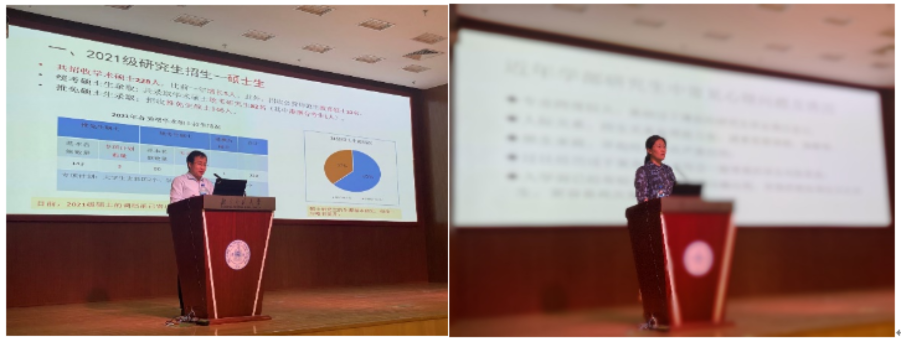 大会最后一项内容,由周涛副部长和王颖副书记对学部近期教育教学工作进行部署。周涛副部长首先介绍了学部2021年招生情况、夏令营举办和学位论文评审情况,重点说明了风险论文的界定及成因,同时通报了研究生培养过程中遇到的问题。接着,王颖副书记对近几年学部研究生出现的个别心理问题进行了简要梳理与通报,并提出了重视学生身心健康等工作建议。