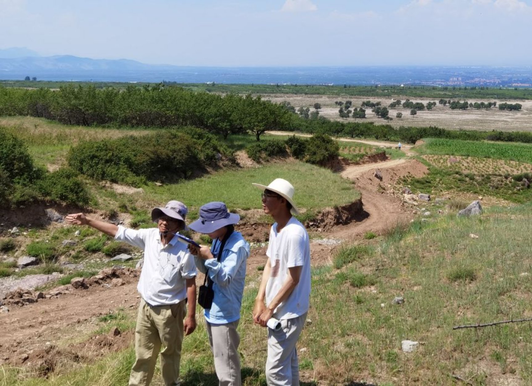 图1 谭老师在野外讲洪积扇