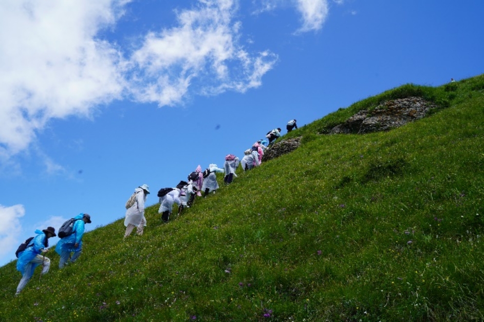 7月4日,师生一同攀登了相对海拔2671米的小五台山西台。在攀登过程中,老师同学们齐心协力,互帮互助,最终师生共八十多人成功登顶!