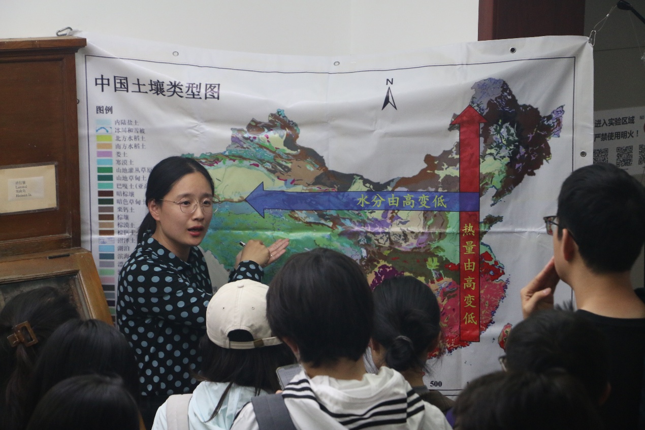 杨扬老师首先为同学们展示了中国土壤类型图,并据此介绍了中国主要土壤类型及其分布范围、主要特征和开展景观规划或设计时需要注意的要点。接下来,以生地楼的土壤剖面标本为例,依次介绍我国主要土壤的剖面构造。