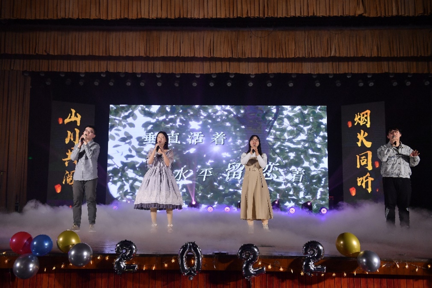 入烟火而观人间,此时正是华灯初上、喜庆祥和;出云海而望明月,又见圆满人团圆。“华灯邀月”,当共度这份美好。进入第三板块:八件器乐合奏,悠扬婉转,共叙一段《美丽的神话》;衣袂飘飘,寒冬时日仍有《梅香如故》。2021级本科2班带来的创意舞台剧《甄嬛传之惊鸿舞》在《甄嬛传》情节的基础上加入了不同地域的方言,既再现了经典当中的一舞倾城,又体现着人文地理的特色。2019级本科1班带来的合唱《沿途》以歌为媒,讲述着师范班的点点滴滴,表达着他们对三尺讲台的热爱和对育人使命的坚守。《你本绚烂》歌声余音绕梁,舞蹈极具故事性,联袂打造了一场属于地理人的视听盛宴,将晚会气氛逐渐推向高潮。《世界上的另一个我》用明快的节奏和充满动感的旋律紧紧地吸引着观众。“岁月为我大浪淘沙,而你被留下”,提示我们要珍惜当下的伙伴,珍惜现在的时光。