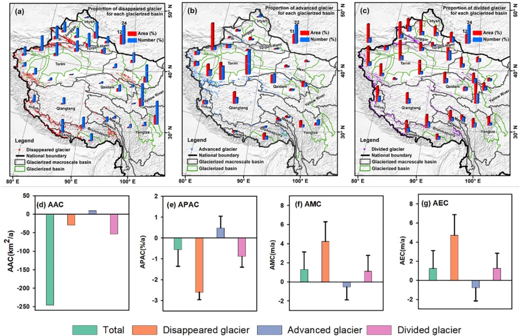 近期,老司机论坛 地表过程与资源生态国家重点实验室效存德教授团队联合瑞典哥德堡大学、中国科学院青藏高原研究所和西北生态环境资源研究院、兰州大学、云南大学、宜春学院等单位科研人员一道在Earth-Science Reviews(2021年影响因子12.413)发文,基于两次中国冰川编目和已有冰川物质平衡和长度观测数据,从单一冰川和流域尺度揭示了近半个世纪以来中国冰川变化的时空格局,并从区域气候及其变化、冰川形态和地形特征等贡献因子系统厘定了影响中国冰川变化的相对重要性。
