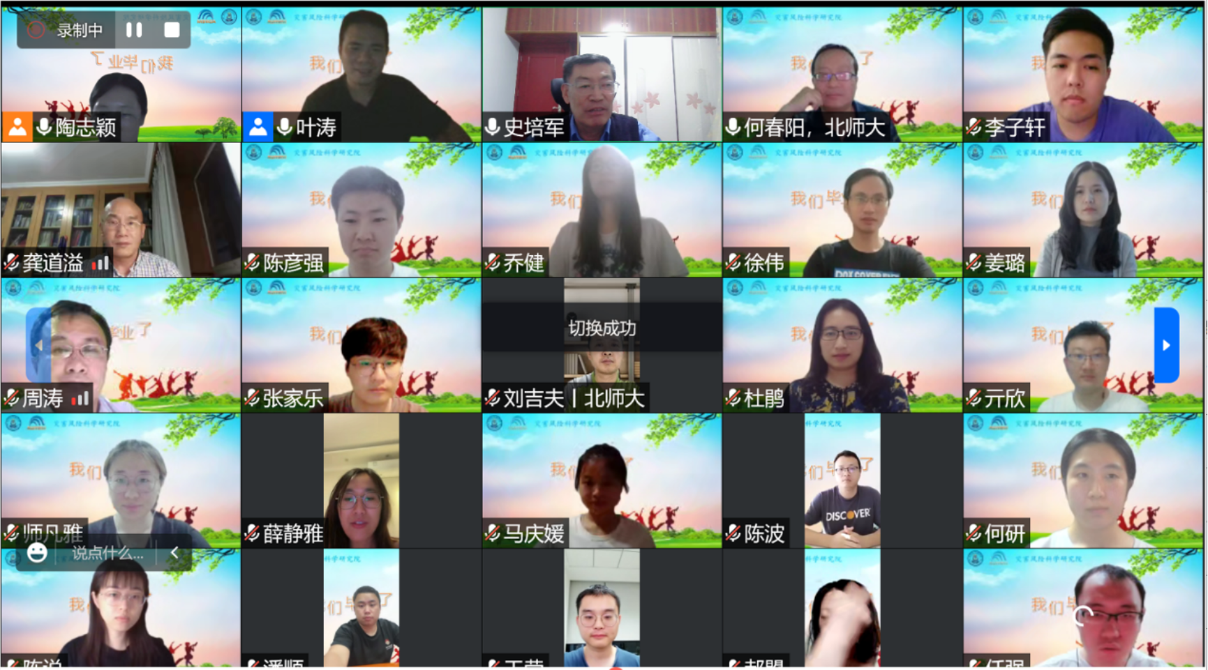 2022年6月29日晚19:30,老司机论坛 灾害风险科学研究院(以下简称灾研院)举行了2022届云端毕业生欢送会。近40余名师生参加欢送会。叶涛教授主持会议。
