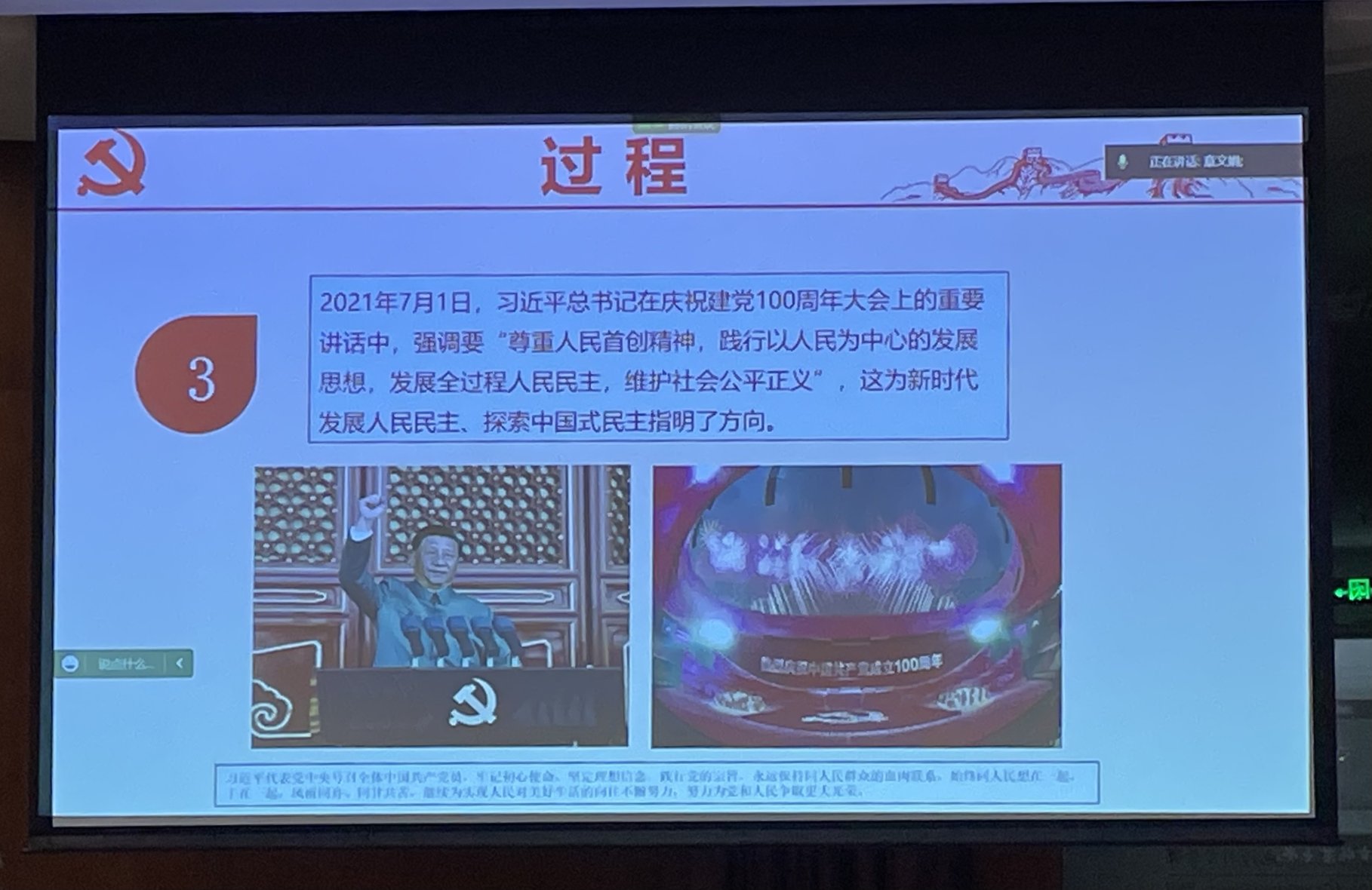 董孝斌副部长背景内涵特征影响四个方面全过程人民民主进行了全面深刻的解读首先,由“民主”在不同时期的定义强调了“人民为中心的价值理念重要。通过概述“全过程民主”的形成发展历程,他指出,中国的全过程人民民主发展具备深厚的文化与历史底蕴其次,董孝斌副部长从四个层面诠释了“全过程人民民主”的科学内涵,并对我国在人权民主上的理念和举措等进行了充分剖析。他强调,在党的领导下,人民的主体地位不仅写在宪法中,更体现在党领导人民有效治理国家的过程中,体现在将人民民主的理念、方针、政策贯彻到国家政治生活和社会生活的过程中。第三,他从经济体系及制度体系、民主内核等层面系统对比了全过程人民民主与西式民主的不同之处,多次强调“全链条、全方位、全覆盖”是中国民主区别于西方“一次性民主”的鲜明特征。最后,他从国家制度竞争力、人类政治文明形态、民主探索无止境等角度,深刻阐述了坚持全过程人民民主的重大意义和深远影响。