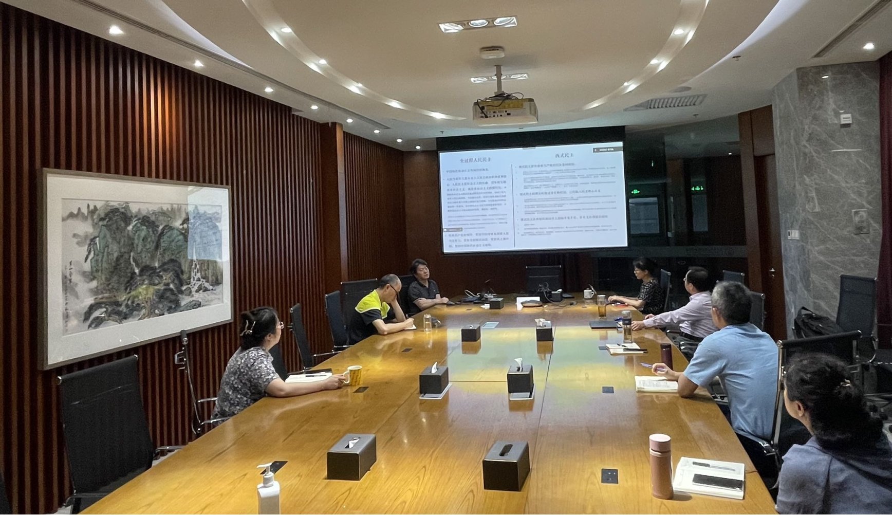 讲座之后与会人员围绕全过程人民民主的相关内容进行了深度交流,学习气氛十分热烈大家纷纷表示,全过程人民民主发展了民主理论、扩大了民主范围、丰富了民主标准、拓宽了民主路径,充分彰显了我国制度优势,提升了国家治理效能,在实践中展现出旺盛的生命力