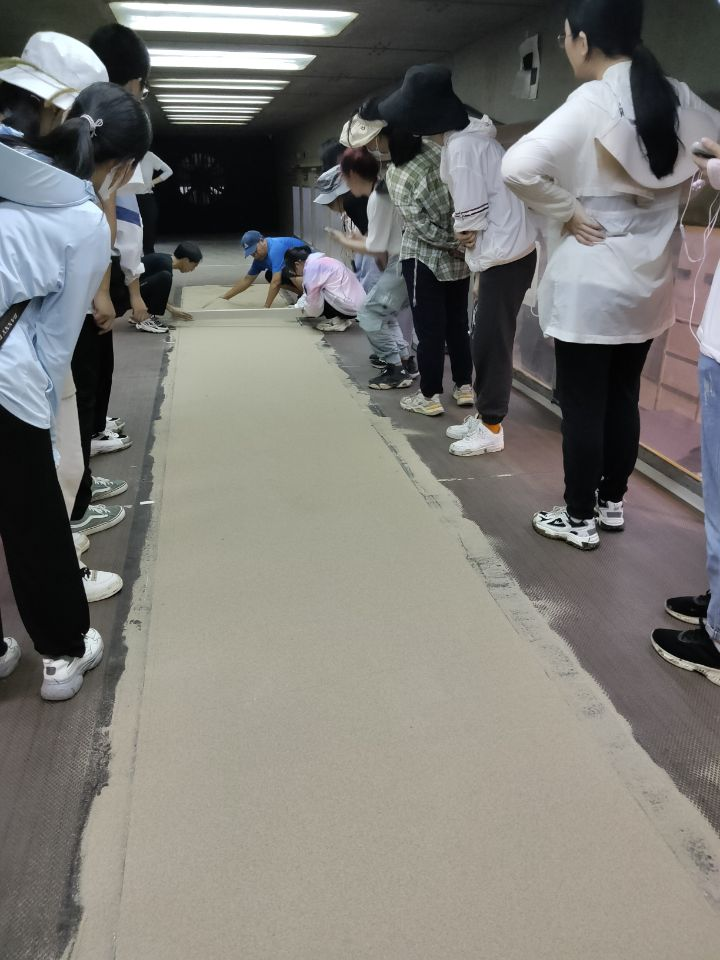 在虎峪,同学们看到了元古界长城系硅质灰岩和太古界密云群片麻岩;在龙山,认识了新元古界青白口系、下古生界寒武系地层的特征;在下苇甸,看到了地层的不整合接触,以及断层、褶皱等地质构造;在担礼,观察了河床、河漫滩、河流阶地的地貌形态,在河道捡砾石,进行砾石岩性和磨圆度统计;在京西古道,思考一串串马蹄印背后的原因;在房山周口店,发现捕虏体,观察花岗闪长岩岩体的岩性分带,探秘北京猿人遗址;在七王坟,认识洪积扇的沉积结构和构造特征;在斋堂,拜访了马兰黄土起名地——马栏台;在房山实验基地,体验了降雨模拟和风洞实验;在八达岭长城,成为了一名“好汉”……