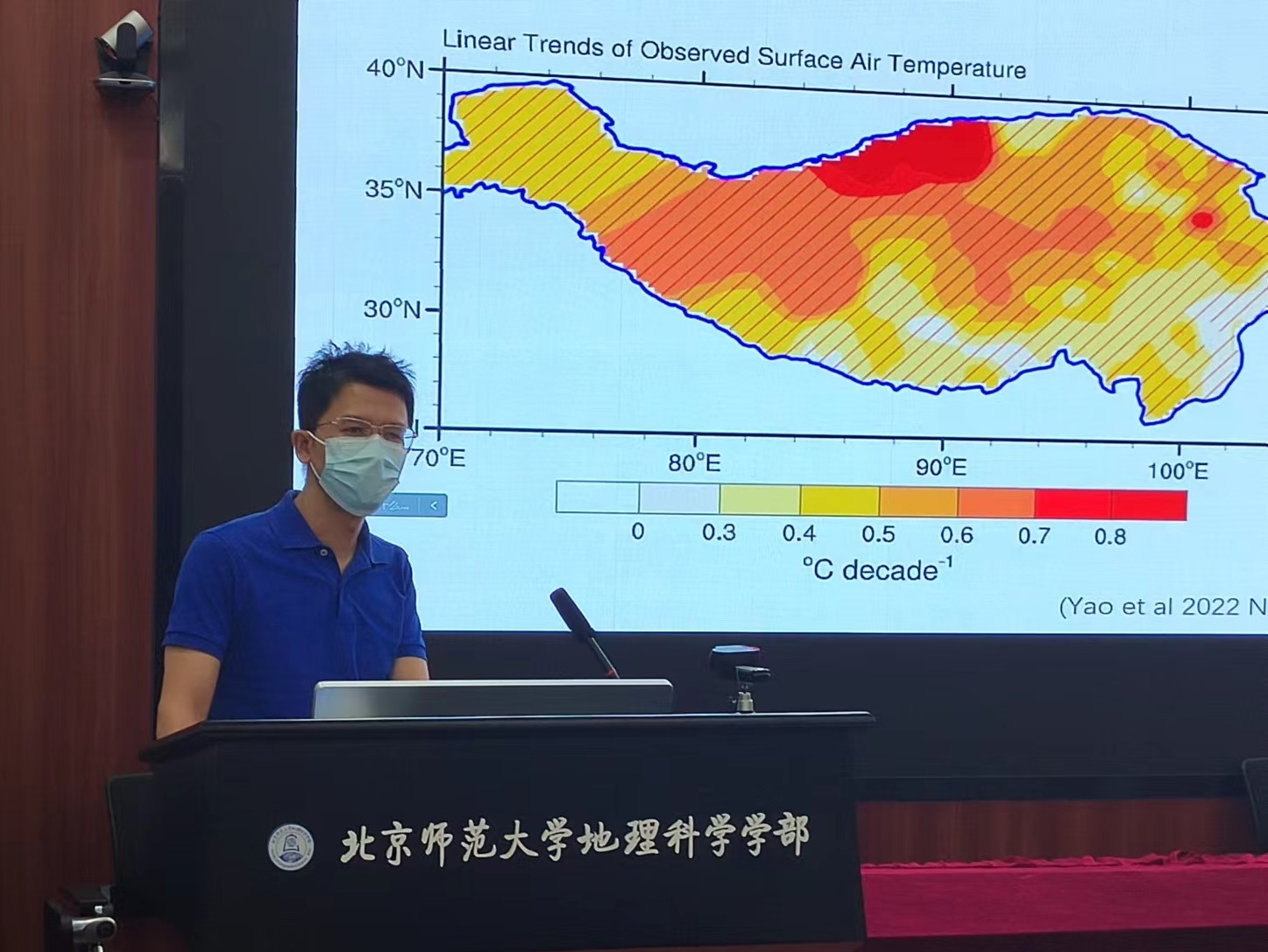 沈妙根教授介绍了Nature Reviews Earth & Environment综述论文《Plant phenology changes and drivers on the Qinghai–Tibetan Plateau》(青藏高原植物物候变化及驱动机制)(文章链接://www.nature.com/articles/s43017-022-00317-5)。报告中,沈妙根教授介绍道,基于遥感观测结果,青藏高原植物生长季开始期(SOS)在1982-1999年间提前了9.4±2.2天,在2000-2020年间提前了8.3±2.0天;生长季结束期(EOS)在1982-1999年间无显著变化,在2000-2020年间推迟了8.2±1.9天。温度的升高和降水的增加是SOS提前和EOS推迟的主要驱动因素,但温度和降水变化对青藏高原物候的影响表现出较强的空间不均一性。