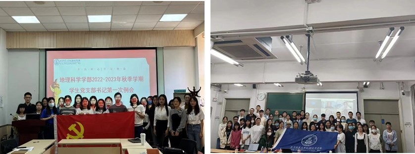 在新中国成立73周年、党的二十大胜利召开之际,为进一步教育引导学部学生重温红色记忆 、赓续红色血脉,在学校党委学工部、学部党委的指导下,在遵守学校防疫规定的前提下,地理学部学生党支部、团支部、班级及学生组织在国庆前后开展了一系列丰富多彩的主题教育活动。这些形式多样的活动旨在让新生更快更好地融入新生活,让全体学生度过一个充实、快乐、有意义的国庆假期,以及积极营造喜迎党的二十大的浓厚氛围。