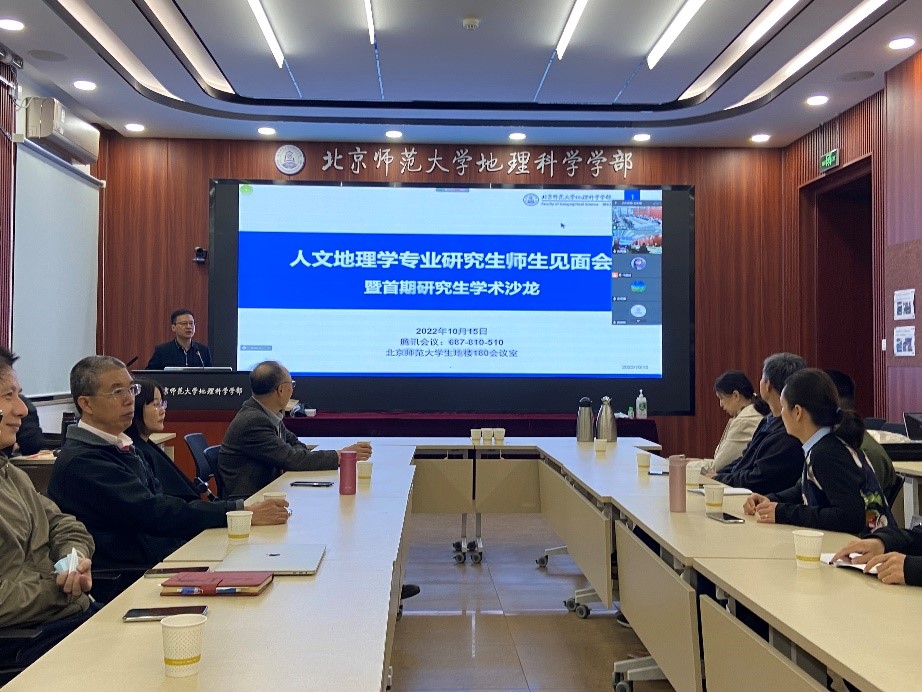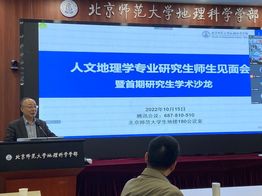 为促进人文地理学专业的师生交流,倡导主动思考、互相学习、激烈思辨的学术讨论氛围,增强专业凝聚力和归属感,2022年10月15日上午,人文地理学专业师生见面会暨首期研究生学术沙龙在生地楼180会议室通过线上线下方式顺利举办。会议邀请到老司机论坛 部长宋长青教授和人文地理学专业17名教师参加,现场共有39名硕博研究生,此外还有部分师生在线上参加。会议由人文地理学专业负责人朱华晟教授、2021级人文地理学硕士生陈天麒同学共同主持。